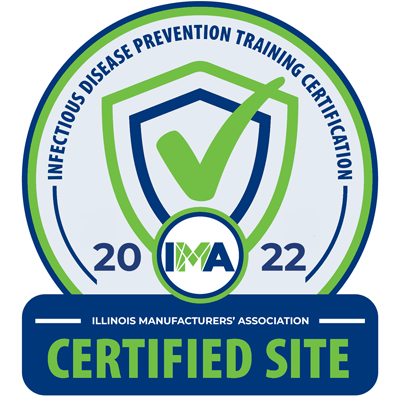 At our headquarters in Downers Grove, Illinois, our pandemic response plan has led us to revise workspaces, implement a cleaning/sanitizing protocol for shared areas, and provide ongoing reminders and training to all employees. The IMEC Technical Specialist who reviewed our plan said, "You have a simple, comprehensive, easy to understand plan. I will recommend that IMA (Illinois Manufacturers' Association) provide you a Healthy Workplace Certificate."