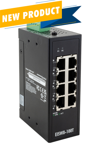 The unit is powered from a choice of low-voltages (AC or DC). Redundant power connections are provided for back-up power schemes. LEDs assist in troubleshooting. Plus, a removable power connector facilitates the servicing of the unit. The switch is UL Listed for Industrial Control Equipment and complies with CFR 47 Part 15 Class A. It carries the CE Mark and is UKCA compliant. The EISW8-100T complies with the Trade Agreements Act (TAA).